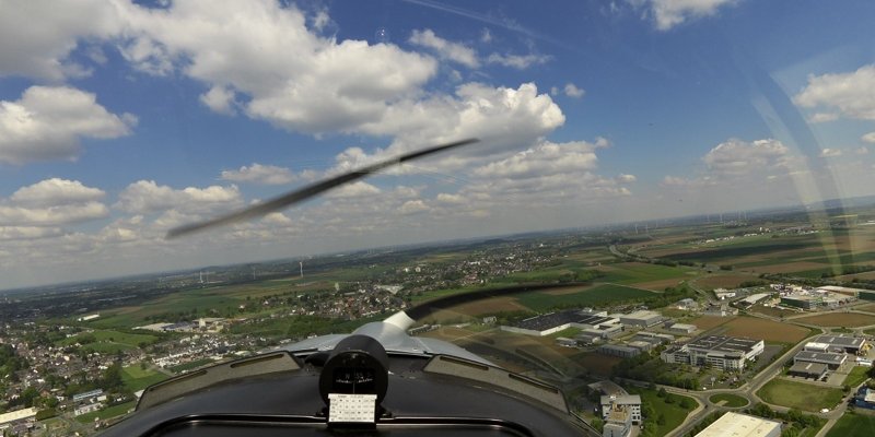 Endlich mal wieder gutes Wetter! Das ist die perfekte Gelegenheit, um mal in Aachen vorbeizuschauen. Im Anflug in die Platzrunde müssen wir noch auf eine Schleppmaschine aufpassen, die mit mit einem Segelflugzeug im Schlepptau startet.